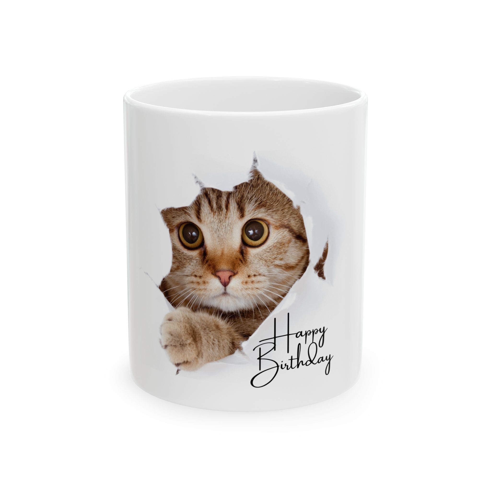 Happy Birthday Cat Mug – Cute Ceramic Cup for Cat Lovers, Coffee Mug, Birthday Present, Home Decor, Animal Mug
